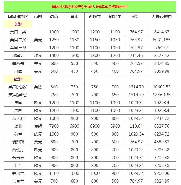 根据最新的国家公派出国人员奖学金资助标准来看,像美国、加拿大、英国这些发达国家和地区的资助标准相对较高,基本能满足申请人在国外进修的日常开支。